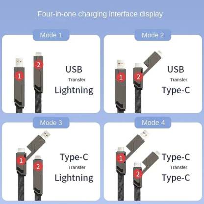 4-in-1 Flat Braided Anti-Tangle Charger Cord